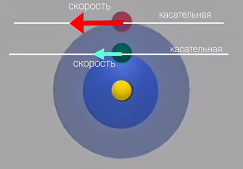 Кроме угловой скорости у точки на краю круга есть ещё скорость, которую называют линейной. Эта скорость всегда направлена по касательной к окружности, по которой точка вращается. Эта касательная - траектория точки в случае, если она от круга оторвется в процессе движения.